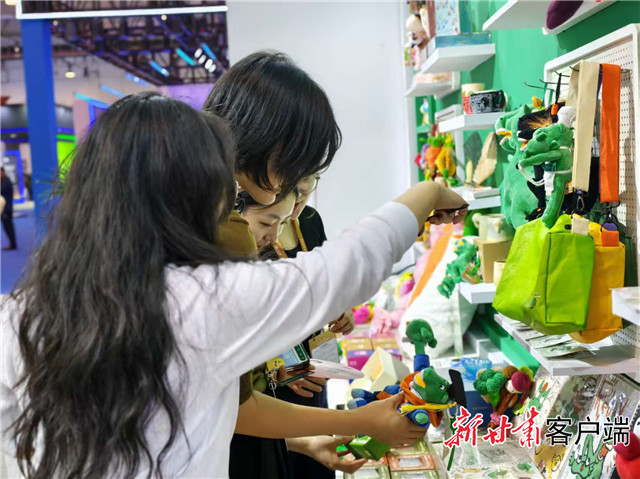 憨态可掬的“领养”敦煌画灵系列毛绒玩具、精致的敦煌日历、科技感满满的深度文化互动产品“寻境敦煌”……来到敦煌研究院的展台前,游客们或戴上VR眼镜沉浸式欣赏莫高窟第285窟的壁画艺术,或精心挑选来自敦煌的文创产品。