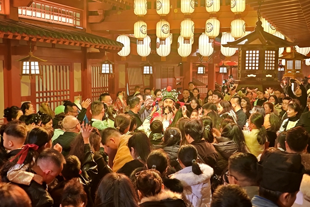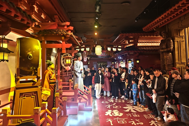 据敦煌艺术团负责人介绍,本次进景区演出将持续至大年初七,通过以丝路文化为内核的文艺作品,丰富广大游客和市民群众的节日文化生活。(文/甘肃省文化和旅游厅 杨沛菡 梁发琛 图片/视频 梁发琛 巩傲)